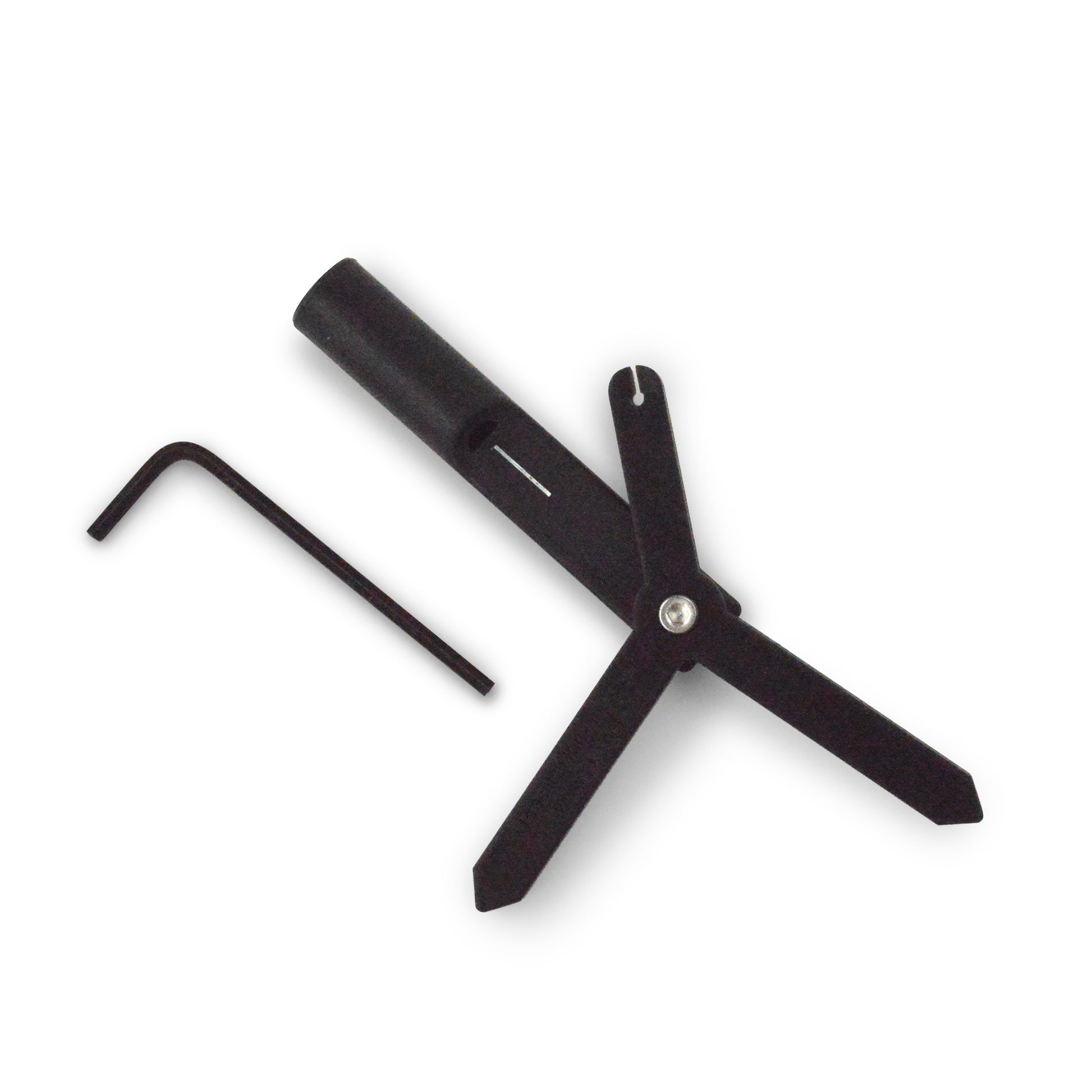 Simply place the 1/2" (12.7mm) tool in the chuck, lower the fork onto the round material to be drilled, align the vice/material until the lubber-line is centered, clamp the job down, replace the tool with the bit and drill with confidence!