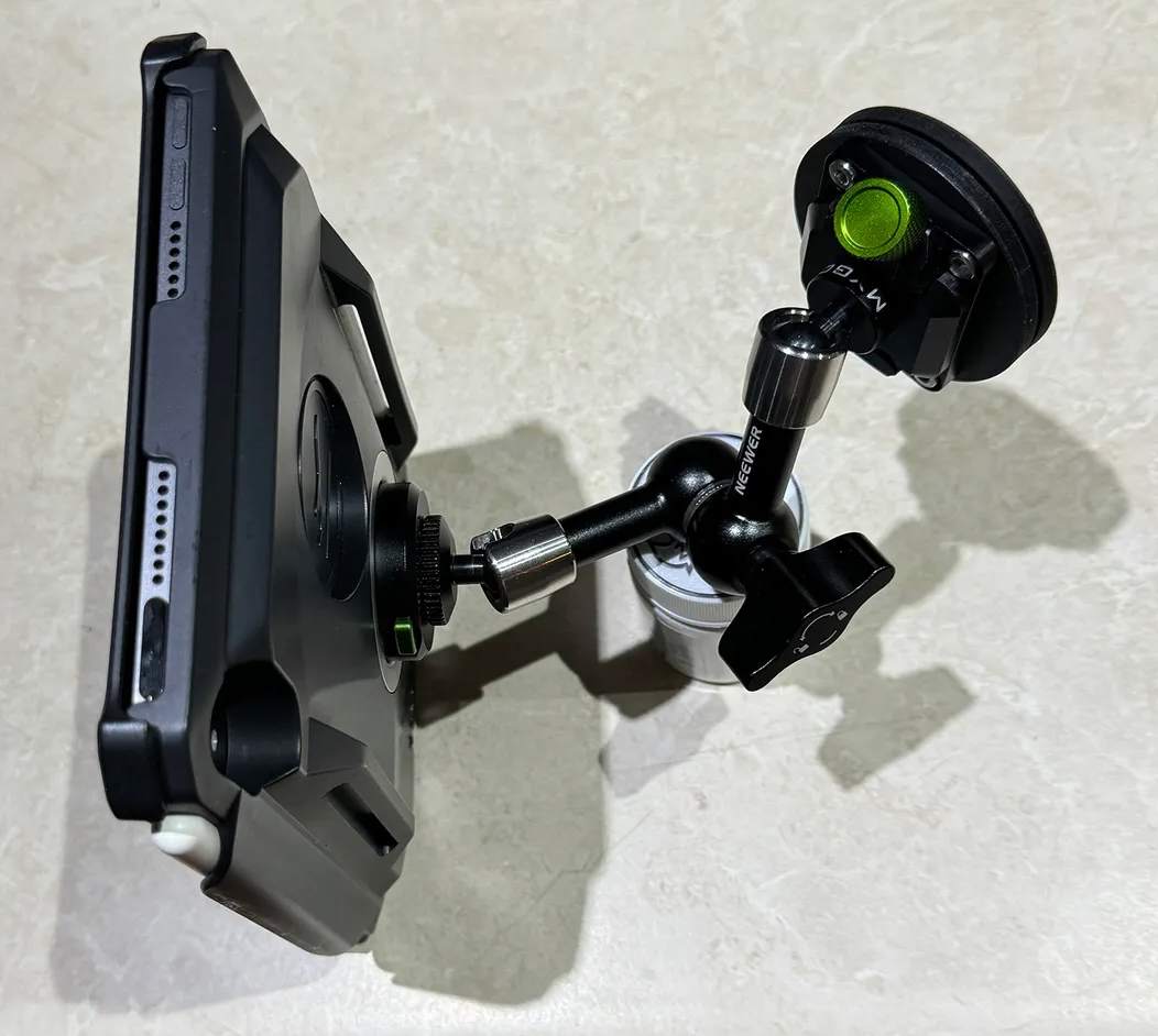 Notes: Evident in the photos and described in the included fitting instructions, the four mounting holes slightly overlap the edge of the 2" 4130 steel lightening hole, which requires some metal removal aligned with each hole using a small round file, followed by de-burring. This won't materially effect the structural integrity of the windshield bow (in normal or rollover situations), but does positively prevent the iPad mount from rotating in flight should the mount be installed loose.