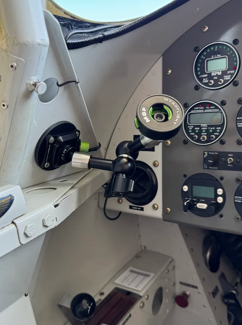 These concentric rings suit the Vans RV-8, mounted through the 2" lightening hole in either steel windshield bow gusset (left, right or both sides of the cockpit). They allow an iPad or camera (such as a GoPro) mount to be attached with an AMPS pattern such as the MyGoFlight (MGF) quick-release dovetail base (Part MNT-1746) or RAM 1" ball mount (Part RAM-B-347U). Together they form a strong, vibration-free, and convenient installation for both the MGF long or short 'flex-arm' or a RAM solution, a practical alternative to leg-mounts that typically interfere with the controls or panel mount that hides the instruments. This method also dramatically cuts down vibration to make small iPad text much easier to read in flight.