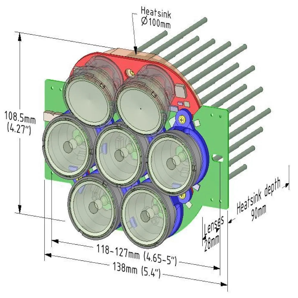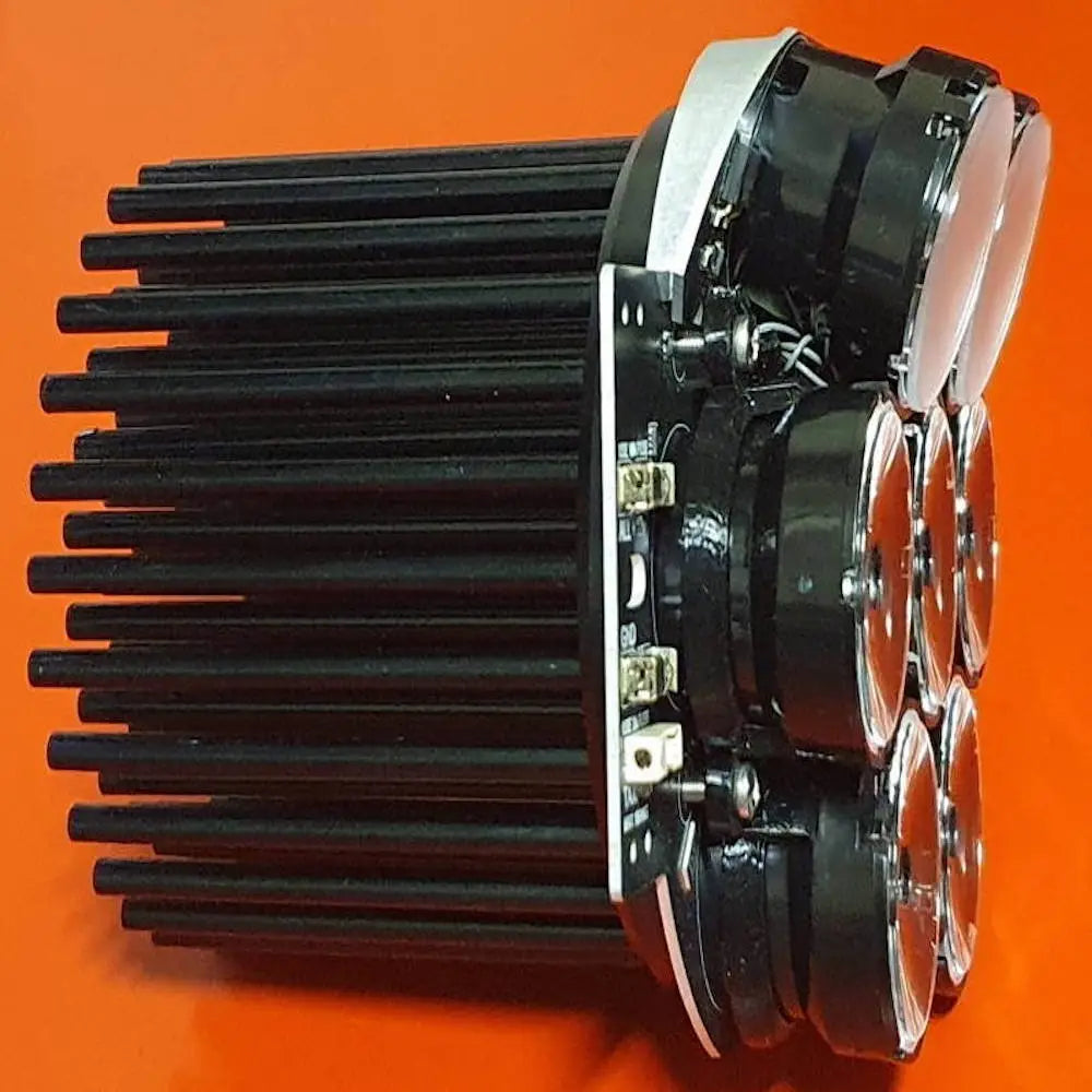 From a single Tail Dragger Max light you get 6500 lumens of clear white 5000k light aimed straight ahead, plus another 2500 lumens of light aimed 20 degrees lower for taxiing. Our landing lights are fitted with collimating lenses making a tight 8-degree beam, throwing the light as far forward as possible so you get to see those runway numbers as early as possible. The taxi lights are fitted with diffuser lenses to spread the beam across the ground.