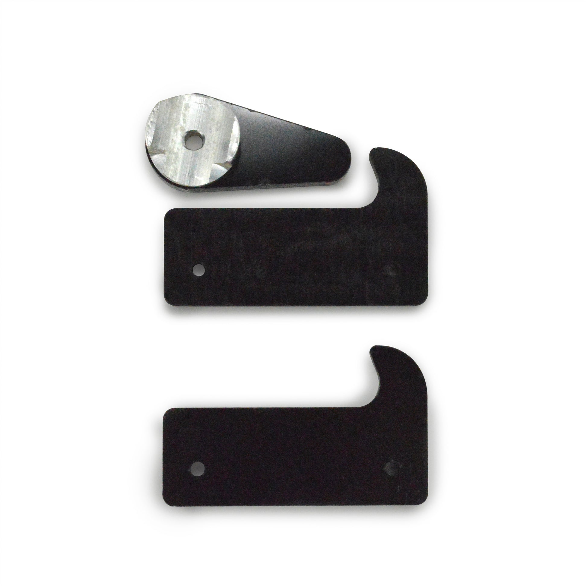 New after 2021: the default kit now comes with two hook pieces for more flexibility. You may choose to use the second piece as a shim to get the appropriate spacing or source your own shims and use the second hook to add an additional stop. “Extra stop only” includes one hook piece and a shim piece to match the original design.