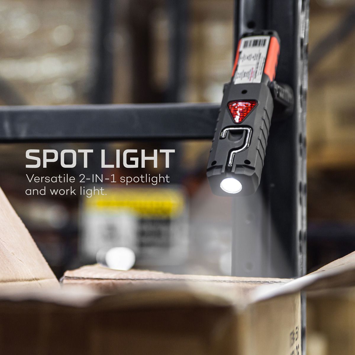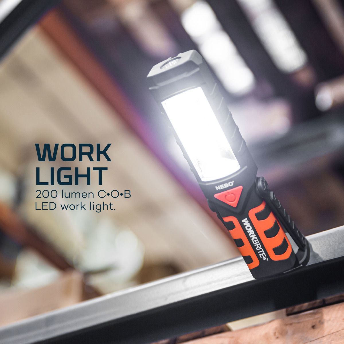 The WORKBRITE 2 adapts to your work environment, making it the handiest of work lights. Equipped with a 200 lumen C•O•B LED work light, the WORKBRITE 2 also features a 100 lumen flashlight and a rear, emergency red flasher LED. The WORKBRITE 2 provides hands-free lighting in three different ways: a hanging hook, a 200º pivoting stand and a magnetic base. Whether you are under the hood, under the sink or just out in the dark, the WORKBRITE 2 works great for any application. WORKBRITE 2…It stands! It hooks! It sticks! It lights! It WORKS!